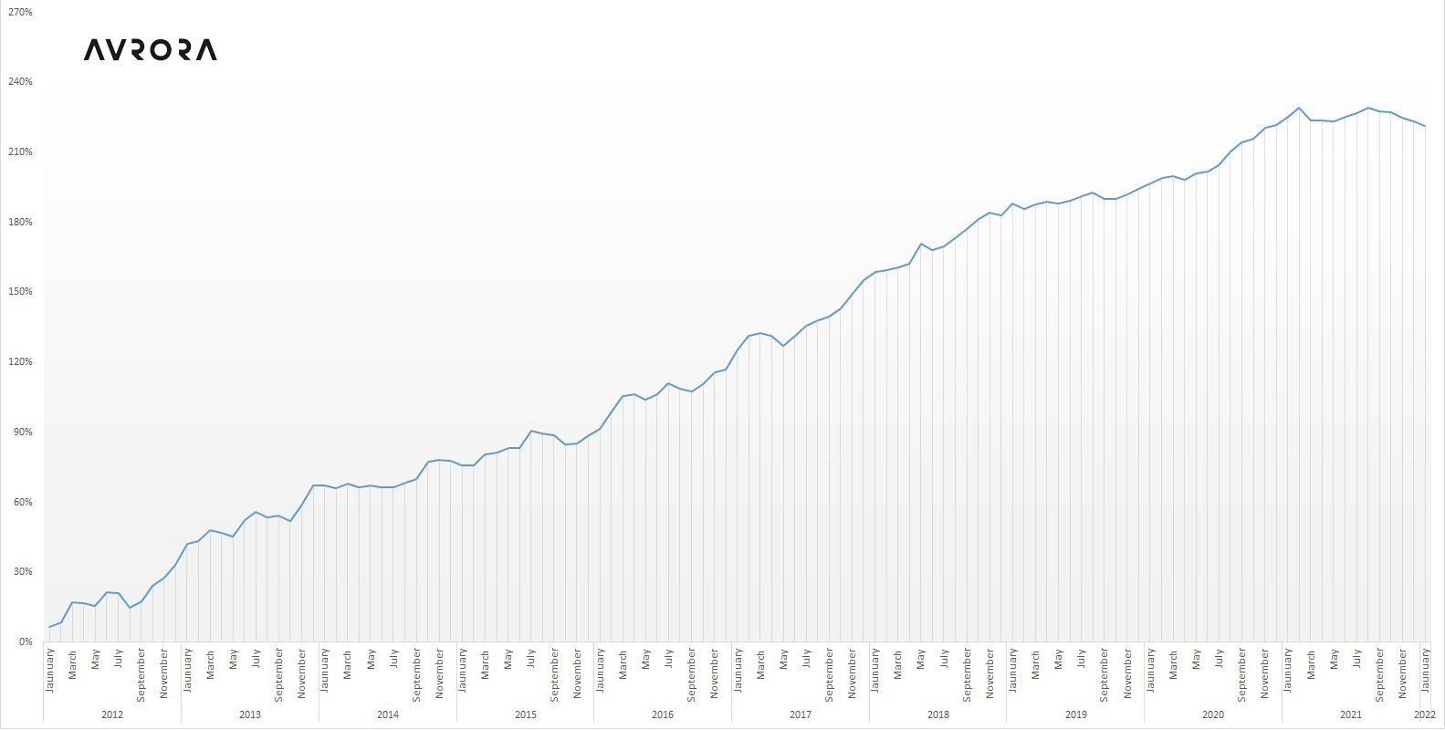 AURORA: Total return from the beginning without compound interest: 222.22%